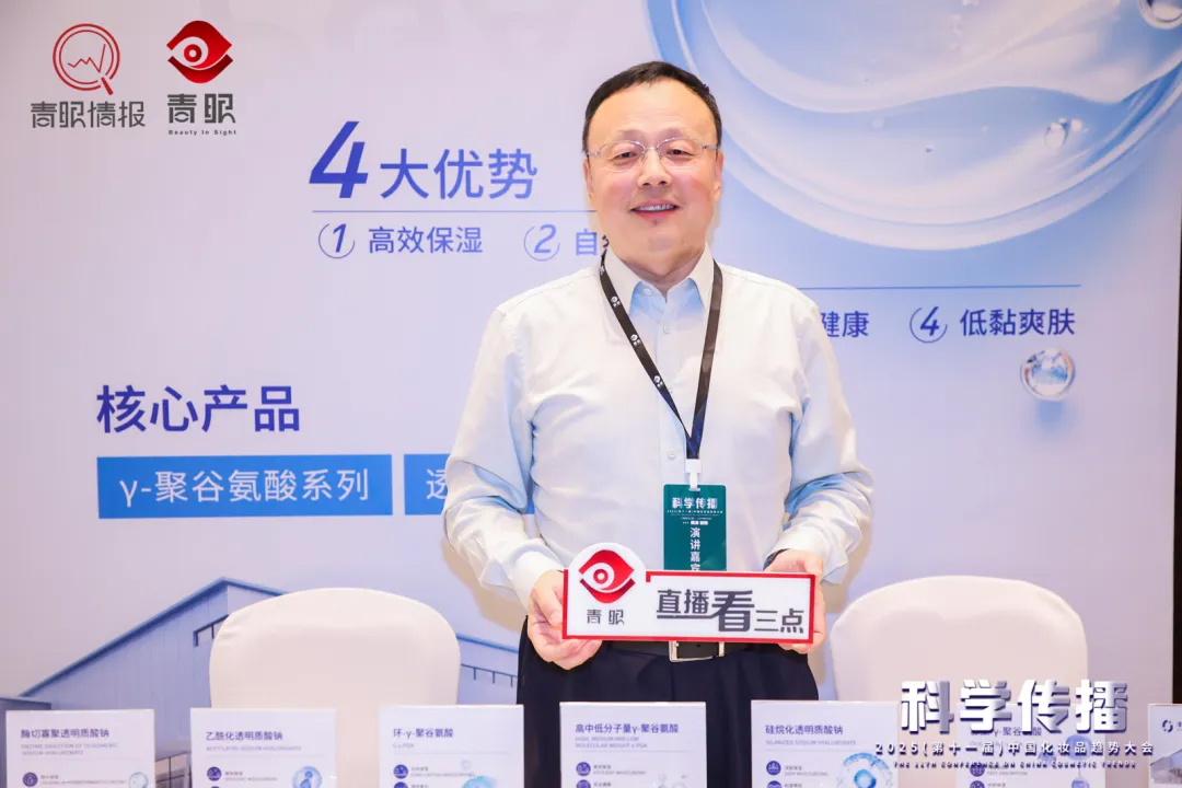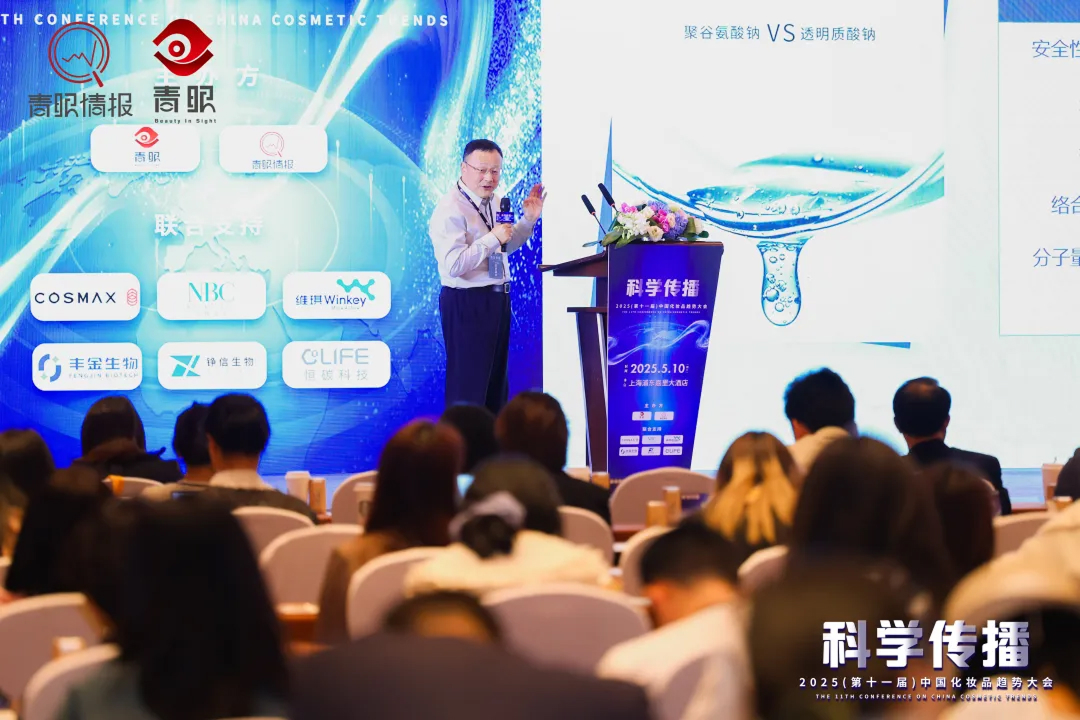 5月10日,2025(第十一屆)中國化妝品趨勢大會在上海盛大召開!本次活動由青眼、青眼情報主辦,以「科學(xué)傳播」為核心議題,行業(yè)領(lǐng)袖、科研先鋒齊聚一堂。山東豐金生物技術(shù)有限公司(以下簡稱豐金生物)作為聯(lián)合支持單位參與本次盛會,豐金生物董事長、總經(jīng)理朱希強博士接受青眼會前專訪并受邀登臺演講,分享挑戰(zhàn)玻尿酸的「新」成分——聚谷氨酸鈉(PGA)的最新研發(fā)成果,精彩內(nèi)容獲行業(yè)同仁贊譽。