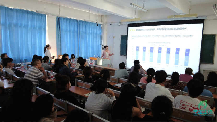校企共建課程第一講由山東豐金生物技術(shù)有限公司直播團(tuán)隊(duì)首席主播李曉彤、王怡檸開講,兩位講師將企業(yè)豐富的案例和前沿的業(yè)務(wù)知識(shí)引入課堂教學(xué)體系,理論聯(lián)系實(shí)際,分析2022年美妝行業(yè)動(dòng)態(tài)趨勢(shì),對(duì)公司品牌進(jìn)行解析,分享抖音直播的實(shí)踐經(jīng)驗(yàn),講解內(nèi)容干貨滿滿,透徹到位,課堂氣氛熱烈。